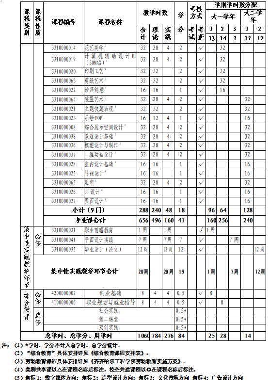 (二)核心课程:招贴设计、品牌设计、数字媒体设计与制作、商品包装设计、龙江技艺文创产品设计、书籍设计