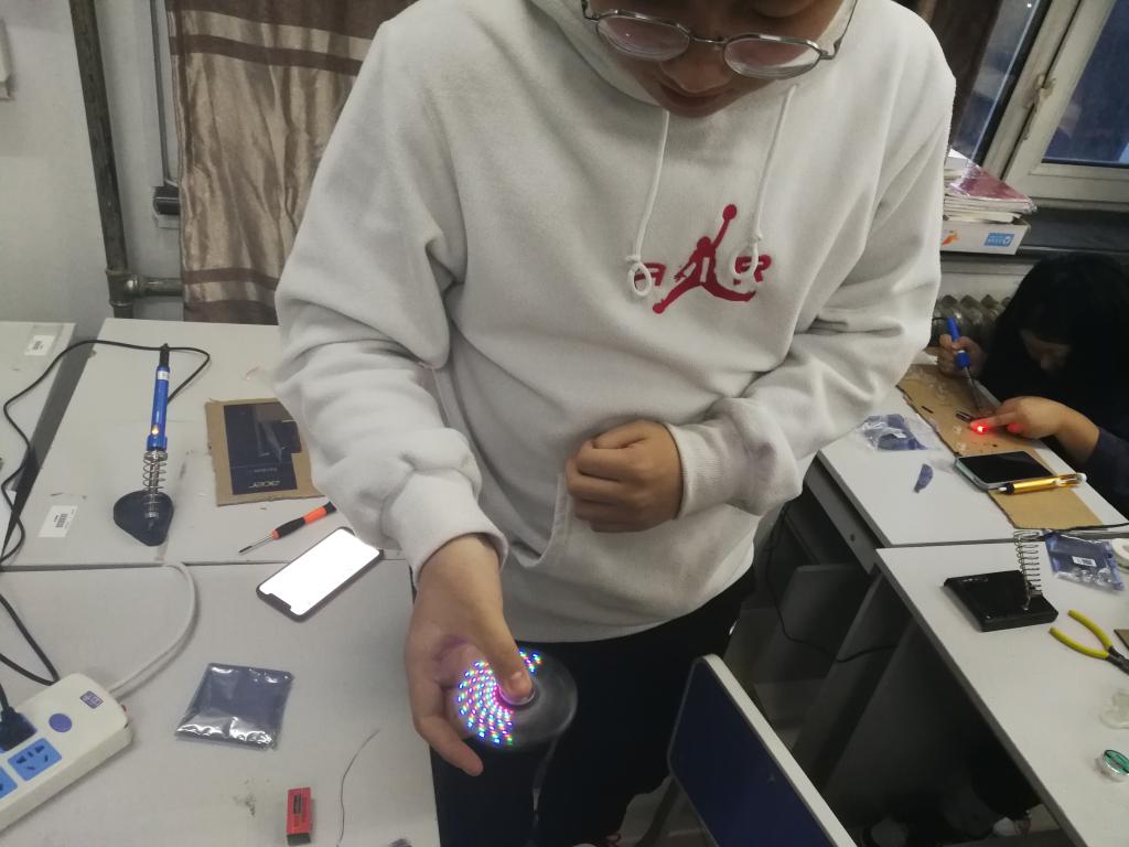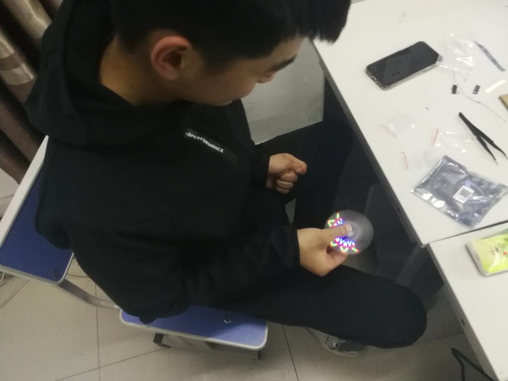 此次比赛由专业长陈国清担任评委,以“手指LED旋转陀螺”为焊接比赛项目。活动开始,陈国清老师进行现场指导,由于是“贴片元件”焊接,原件很小,焊接难度很高,要求同学们掌握“贴片”焊接工艺和技术要点。随着比赛进行,同学们在焊接过程看着作品逐步完成的同时,更是获得了巨大的收获。最后,在评委老师的检查下,同学们完成了自己的“贴片”焊接套件作品。最终,藏虎林等6名同学获得一等奖,梁伯森等3名同学获得二等奖,周晶等人获得三等奖。