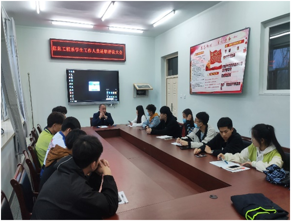 提高团学干部工作能力,提高工作效率与质量。3月29日17时,信息工程系学生工作副主任孙晓芳主任在2304教室召开“学生工作人员述职评议大会”。参加本次会议的有信息工程系所有团学干部以及女生公寓社区负责人。