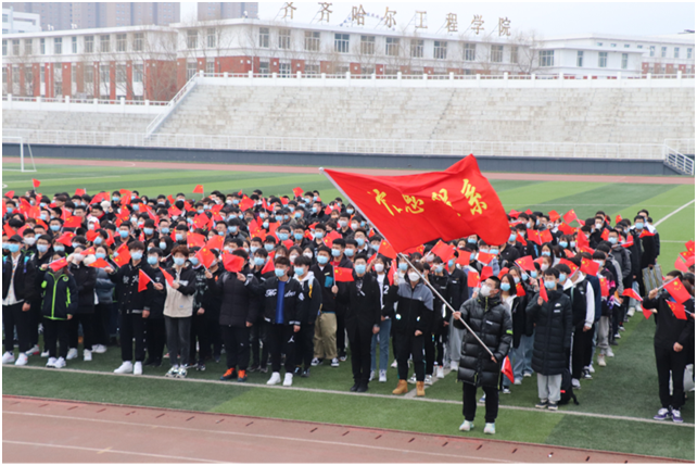 2021年3月19日,信息工程系在体育场举办升国旗仪式。仪式由计科201班王佳艺主持,信息工程系学工副主任孙晓芳老师、信息工程系团总支书记张雷蕾老师、辅导员郭磊老师以及信息工程系全体同学参加。