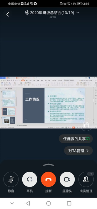 2月5日下午,辅导员任鹏飞使用钉钉视频会议召开班级工作总结会,所带9个班级对2020年班级工作进行全面总结。