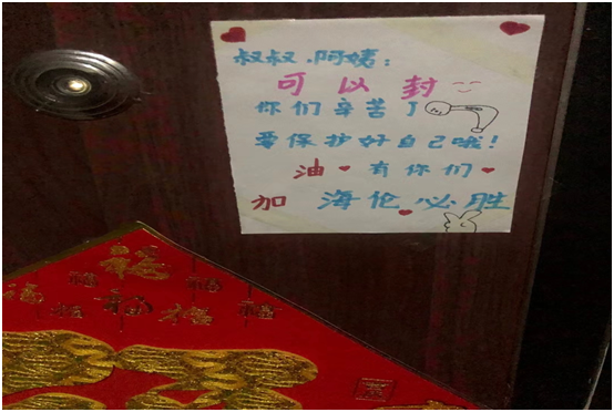 “菜送来了,我放在门口,您出来拿一下。”这是她每天说的最多的一句话,作为青年志愿者,她主动承担起为社区人员送各种必需品的工作。除了送生活用品,她每天还会逐户打电话、发微信,向社区居民宣传防疫知识,细致了解大家的生活状况,并记录每个人的体温情况。