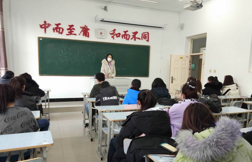 2020年12月3日下午,佟鑫老师在1#1405教室为召开“军事理论素养”为主题的学业指导会。视觉201班全体同学参加会议。