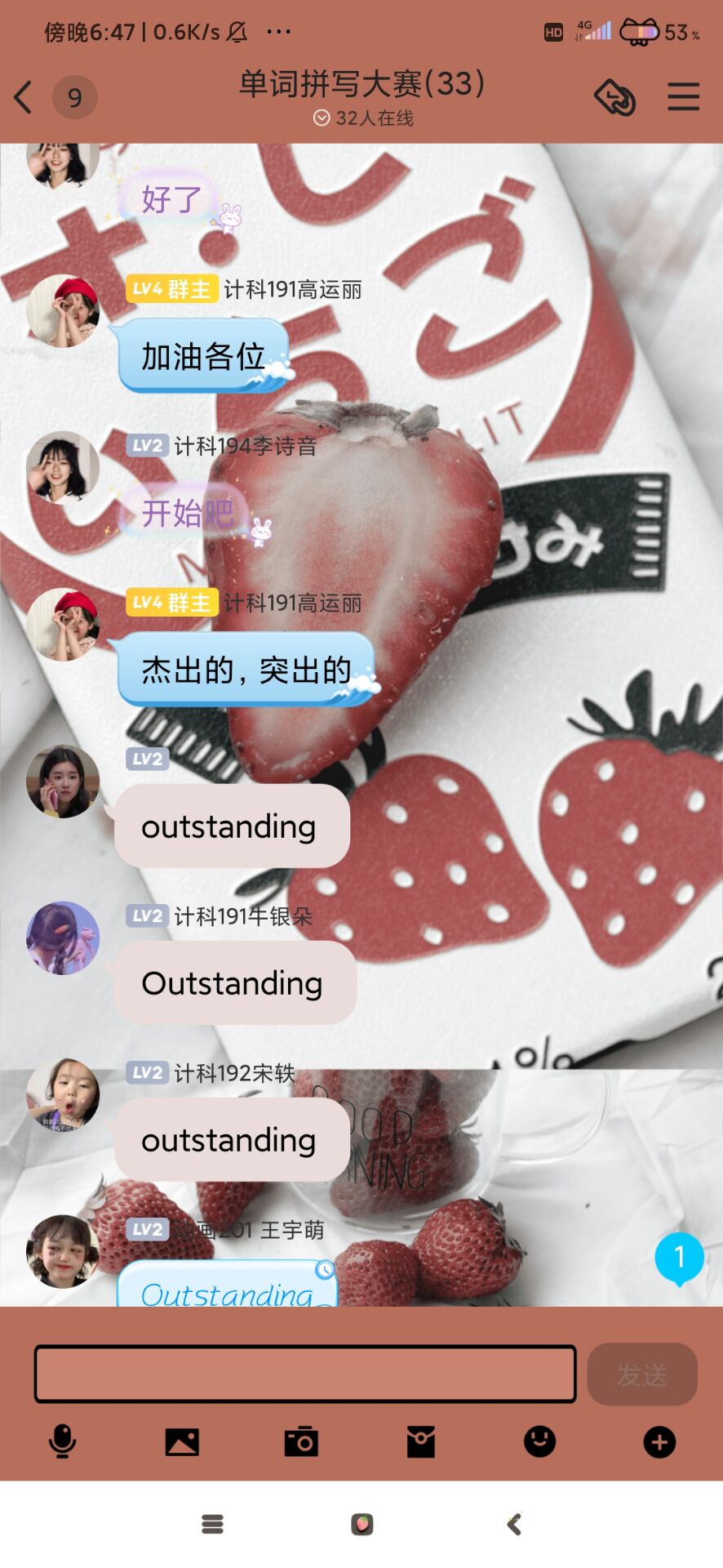 活动前期,通过QQ群进行线上宣传,同学们积极踊跃报名参与。活动前三天发布单词表,参赛成员可进行记忆。活动当天,在比赛QQ群中进行线上答题。参赛人员根据汉语提示,写出相对应的英语单词,最先拼出的前五名同学依次加5-1分,最后按分数高低排名。比赛过程中,参赛人员答题迅速,准确率高,活动氛围良好。