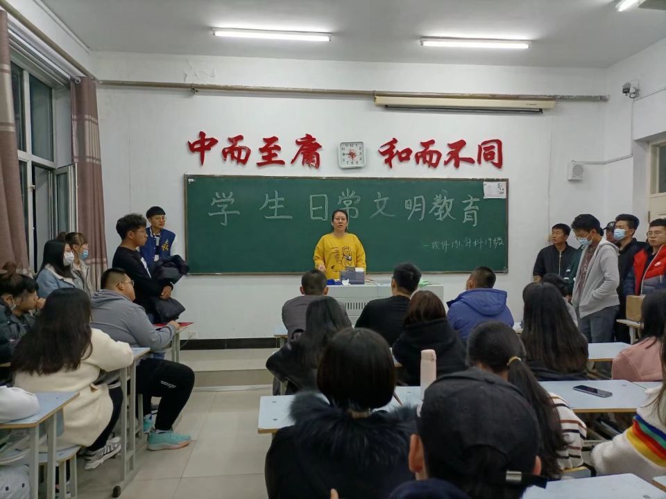 2020年11月2日,为增强同学们日常文明行为及养成良好生活习惯,19级计算机科学与技术专业及软件专业辅导员张雷蕾老师召集全体同学于1#1408开展“学生日常文明教育”主题班会,此次班会由辅导员张雷蕾老师主持。