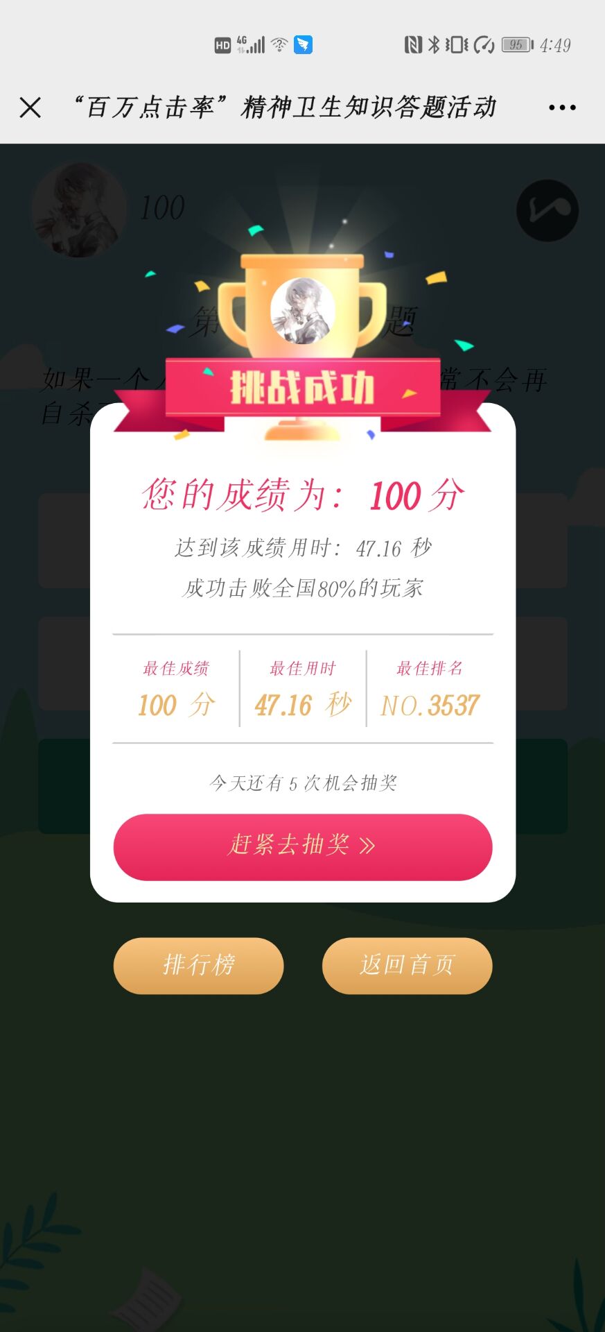 活动开始,同学们都积极扫码参与答题,此心理教育知识问答活动,为同学们全面具体地展示了大学生活中容易产生的心理问题,而学生们通过对心理相关知识的作答,提高了我系学生的心理健康水平,增强大学生的心理健康意识,让更多人意识到了心理健康问题的重要性。