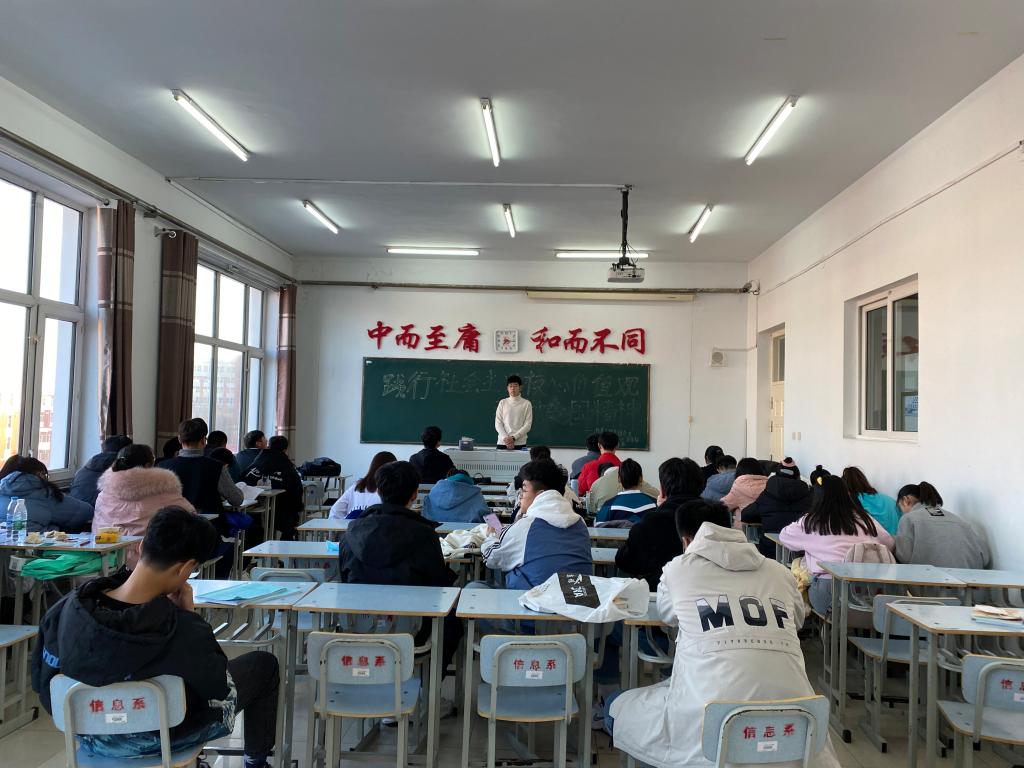 2020年10月19日,计科202班组织委员王梓潞在一教1408组织举办“践行社会主义核心价值观,弘扬爱国精神”主题活动。计科202班全体学生参加。