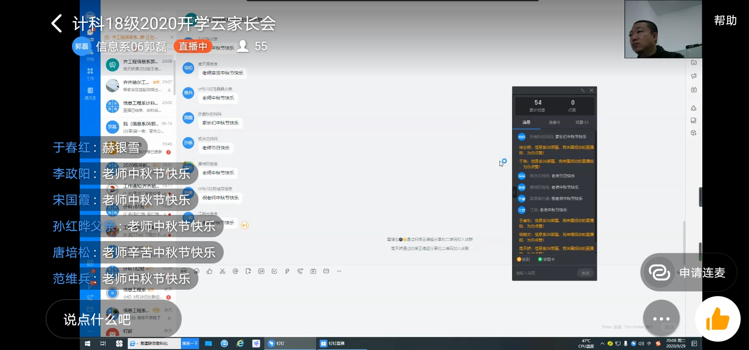 为了让家长更加的了解同学们在学校中的情况,2020年9月29日18级计科专业召开云家长线上班会本次班会借助钉钉平台举行展开。