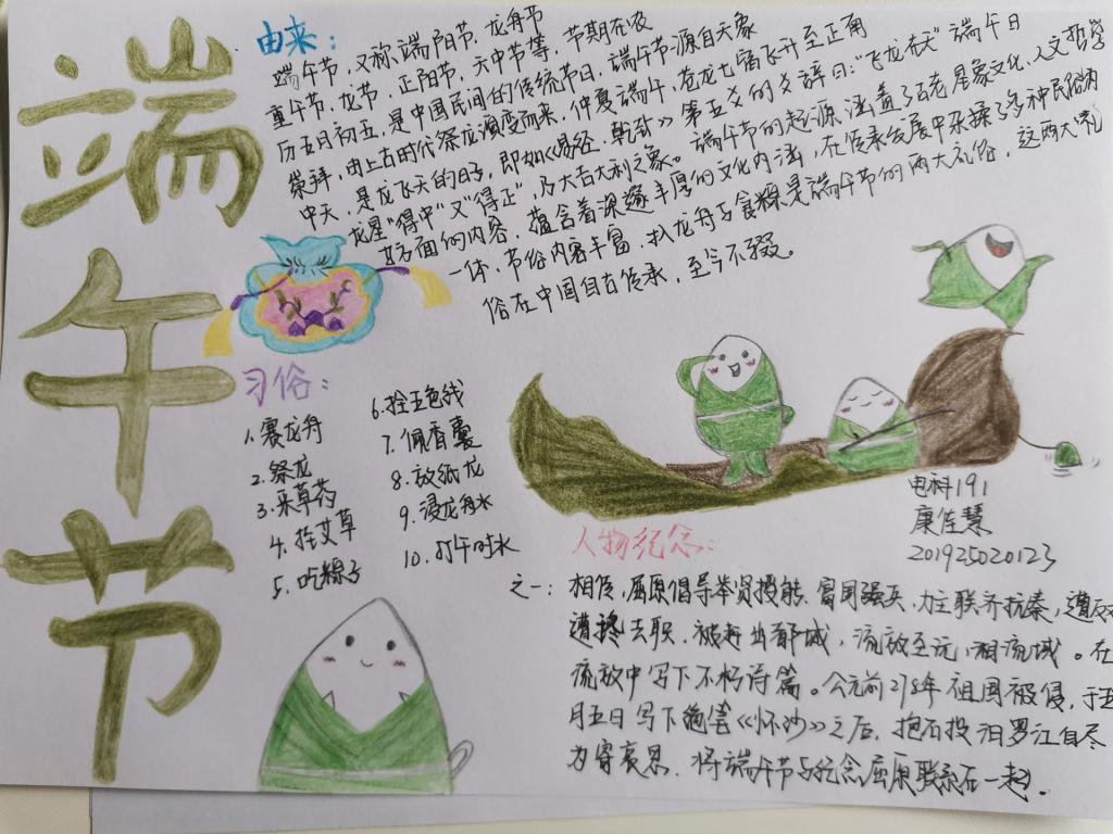 2020年6月24日,信息工程系开展以“浓情端午粽飘香”为主题的手抄报活动,信息工程系学生积极参与。