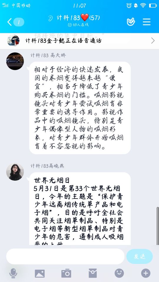为让学生了解烟草危害,提高对自身健康的重视。2020年5月28日,计科183班开展了“世界无烟日”主题活动。本次活动由团支书主持,计科183班全体成员参加。