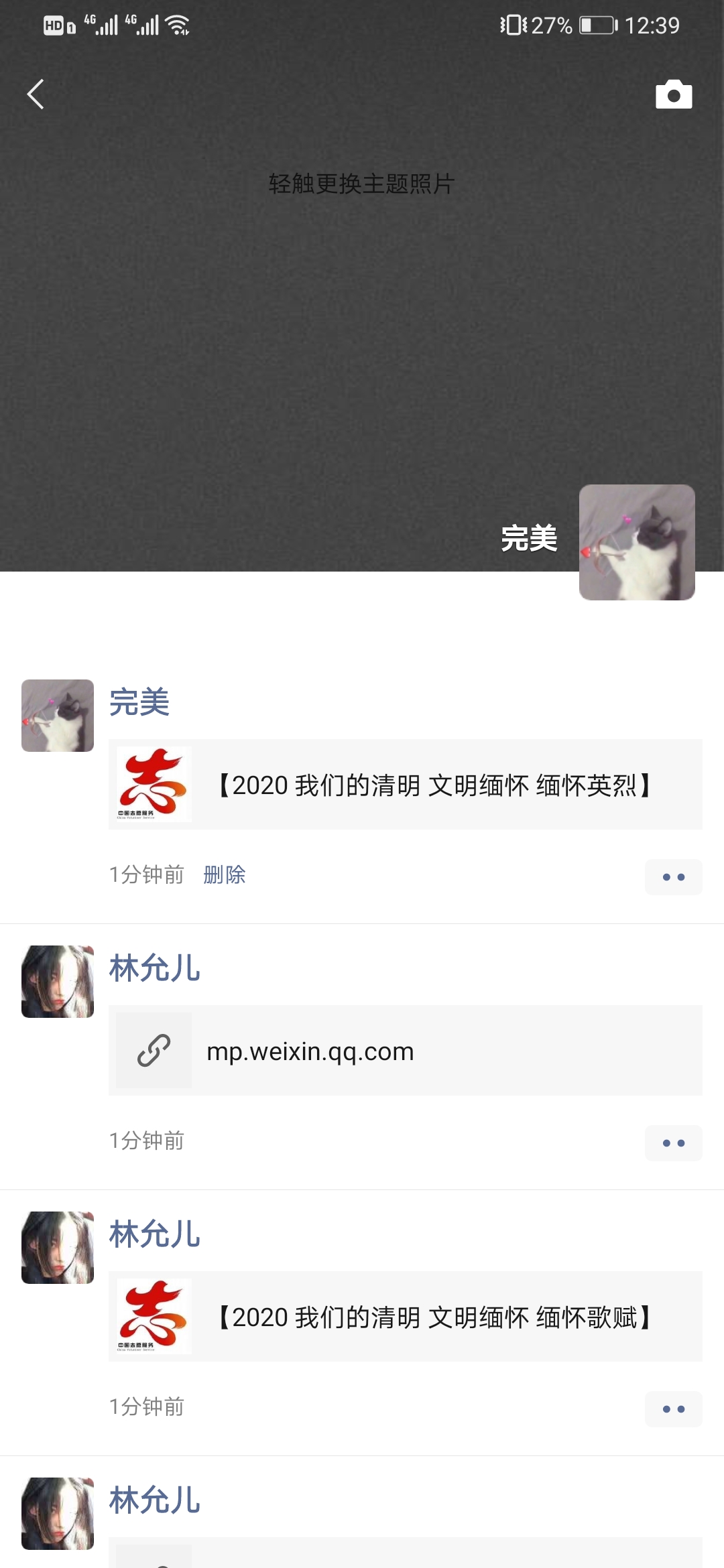 2020年3月31日信息工程系团总支为贯彻落实疫情期间少出门、不聚集等相关要求,预防疫情传播扩散,倡导安全祭祀,决定开展“我们的清明·文明缅怀”网络主題活动。此次活动以分享朋友圈方式进行,信息工程系全体同学积极参与。