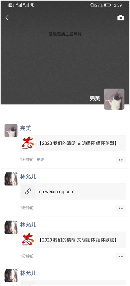 本系同学通过“龙江志愿”微信公众号推出的“我们的清明·文明缅怀”专题,通过分享朋友圈的方式进行对先烈的缅怀。
