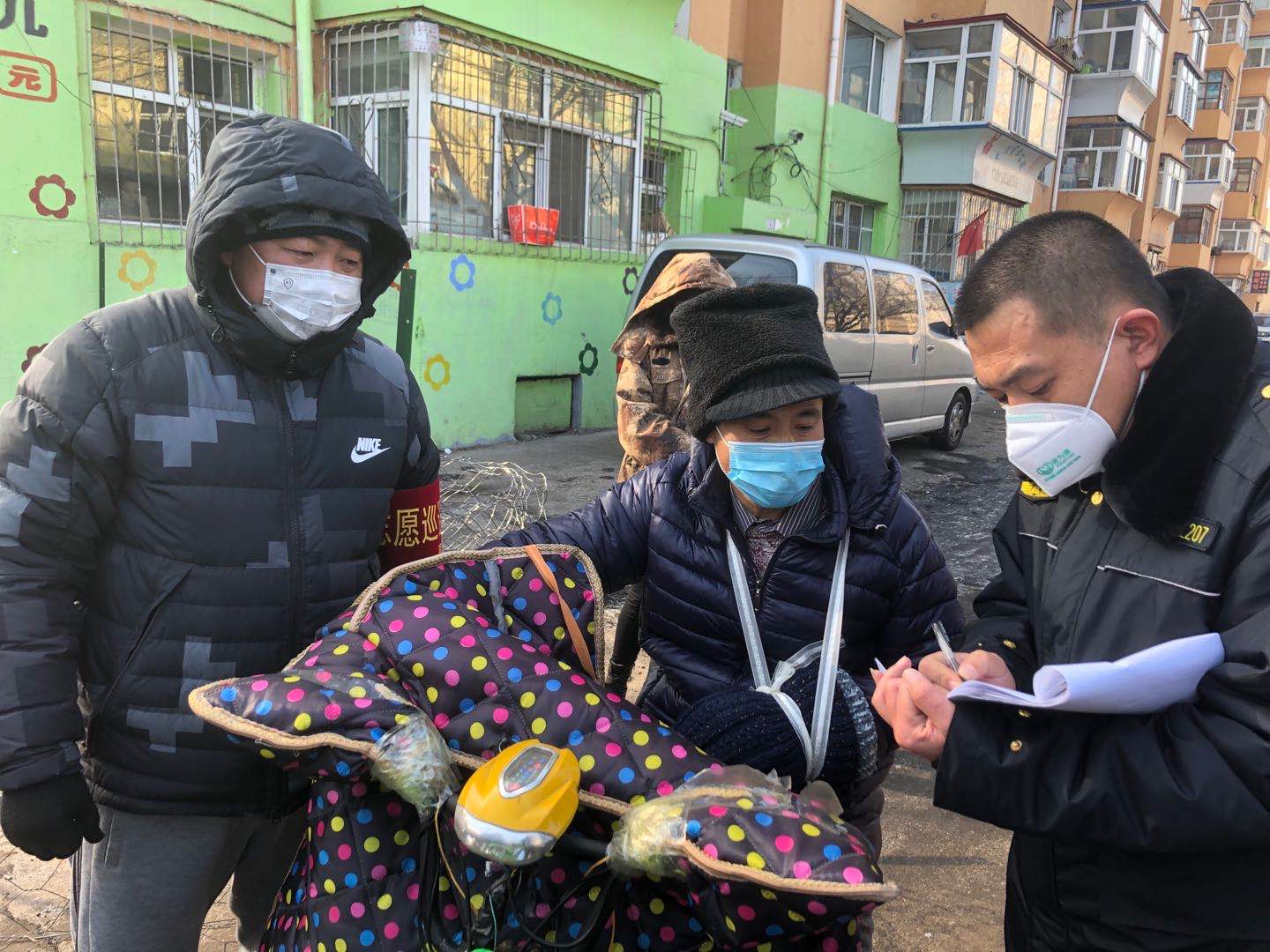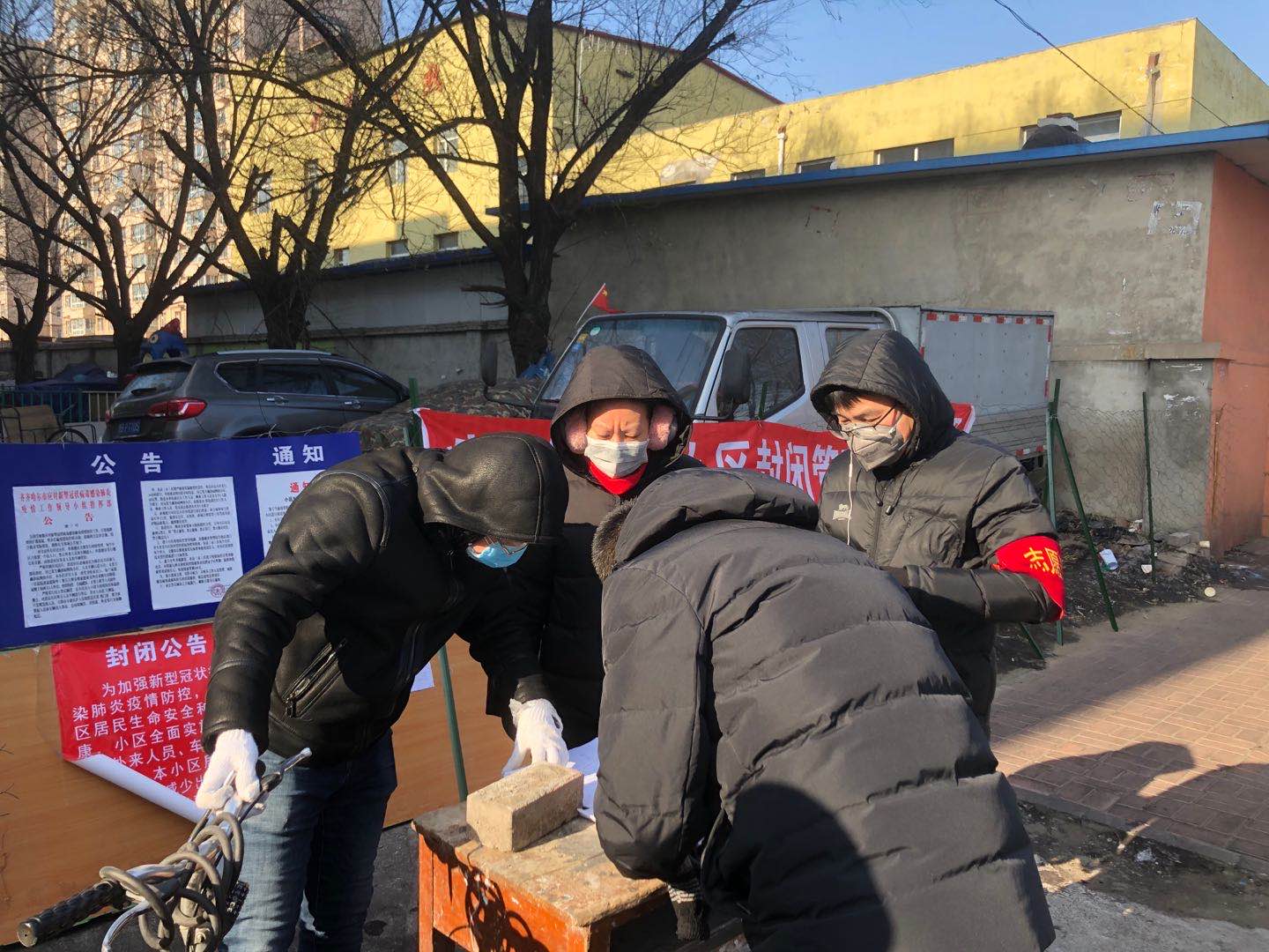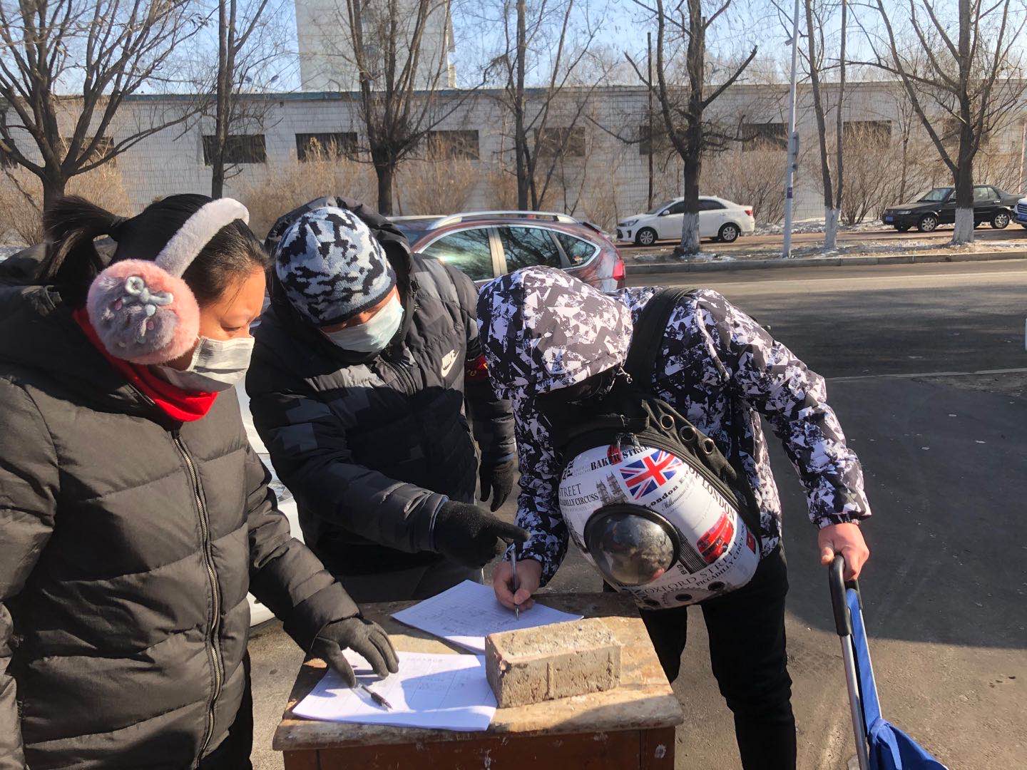 2020年2月9日,信息工程系辅导员老师来到齐齐哈尔市南苑小区参加“抗击疫情”志愿活动。此次志愿活动有学生工作副主任孙晓芳老师、信息工程系党总支书记任鹏飞老师、信息工程系团总支书记张雷蕾老师参加。