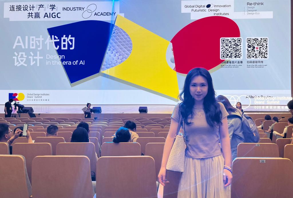 这次会议共有多场精彩的演讲和讨论,内容涵盖了设计教育、设计研究、设计实践等多个方面。在峰会上,赵老师通过学习,不仅更新了她的设计知识库,还对如何将最新的AI技术融入设计教育有了新的见解。她对于如何培养适应未来设计行业需求的人才,以及如何改革设计课程以适应AI时代的新挑战有了更清晰的思路。此外,赵老师还有机会体验了阿里国际AI设计产品“堆友”的教育版,这让她对AI技术在设计实践中的应用有了直观的认识。也结识了许多设计领域的优秀同行,进行深入的探讨和交流。