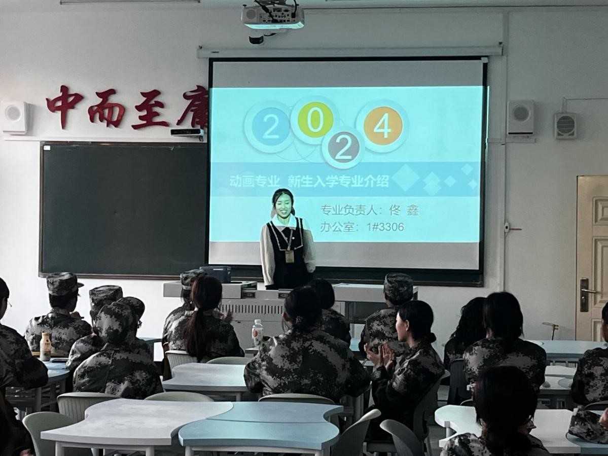 佟老师向新同学们表达的欢迎,为同学们展示往期的优秀作品,并向新生们介绍了动画专业的独特魅力与广阔前景,鼓励学生们勇敢追求梦想,用创意和汗水绘制属于自己的动画人生。她的话语中充满了对新生们的殷切期望,也点燃了同学们心中的热情之火。佟老师讲解了动画的历史渊源、发展现状以及未来趋势,还深入剖析了动画制作的各个环节,包括角色设计、场景构建、剧本创作、特效制作等。通过生动的案例分析和精彩的视频展示,让同学们对动画专业有了更加直观和深入的了解。同时,给同学们提出了在校学习的建议,如平时多观察、多欣赏、多阅读,了解艺术史及其文化,熟知各种学习手段及技巧,多浏览专业网站,特别是叮嘱同学们要从大一开始准备作品集,认真做好每一次作业,在作品的积累中看到自己进步的过程。
