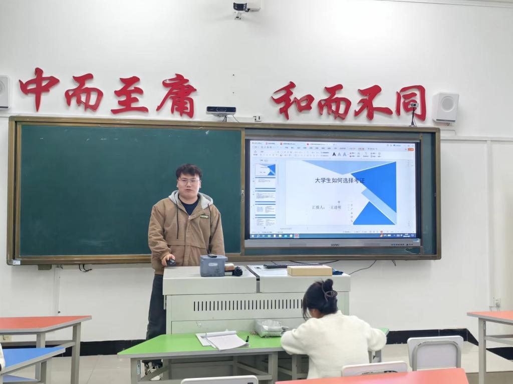 此外,另一位学长还向同学们介绍了大学生在选择考证时应考虑的因素。他特别强调了英语四六级证书的重要性,并指出这对于大数据专业的学生来说尤为关键。同时,他还提到了普通话证书和软件中级证书等,这些证书都能够在一定程度上提升同学们的专业素养和竞争力。