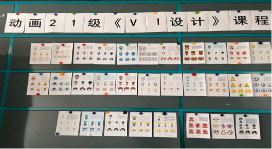 10月24日上午。动画211班在一教A区4层综合展示墙举办《VI设计》课程作品展。