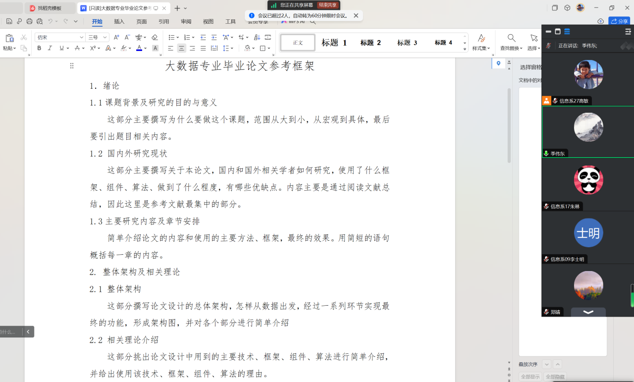 11月20日晚,信息工程系数据科学与大数据技术专业通过线上腾讯会议召开2025届毕业论文(设计)指导会,由数据科学与大数据技术专业负责人高敏主持。特邀请哈尔滨师范大学数据科学与大数据技术专业季伟东副教授,为数据科学与大数据技术专业2025届毕业生指导教师进行指导。