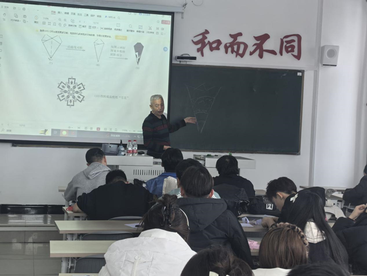 首先,戚玉恒老师详细介绍了剪纸的历史渊源、艺术特点以及制作技巧,让同学们对剪纸艺术有了初步的认识。其次,老师现场展示了剪纸的制作过程,一幅幅精美的剪纸作品在他手中诞生,让同学们大开眼界,深切体会到剪纸艺术的精妙之处。最后,在老师的指导下,同学们亲手尝试剪纸,不仅学会了基本的剪纸技巧,更对剪纸艺术所蕴含的文化内涵有了更深的理解。