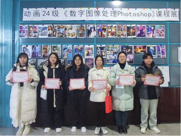 12月3日中午,动画241班在一教A区举办《数字图像处理Photoshop》课程作品展。本次作品展由赵倩雪、王昀碧两位老师共同主持指导完成。动画241班集体同学36人参加。