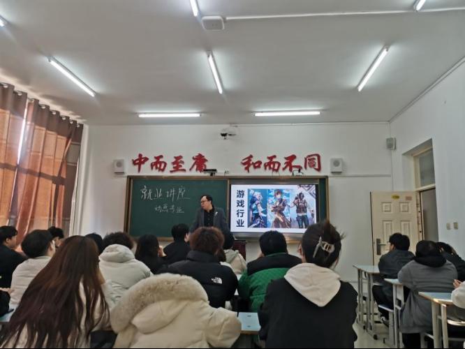 本次就业讲座在李野主任与专业负责人佟鑫对企业进行访企前提下进行,在了解该公司运营项目可与动画专业对接,符合学生就业方向,特安排本次讲座。此次企业宣讲活动旨在帮助同学们更好地了解行业动态,拓宽就业渠道,为同学们的未来职业生涯提供更多可能性。她希望同学们能珍惜此次机会,认真聆听,为未来的就业和发展打下坚实基础。活动现场,哈尔滨智云科技开发有限公司的代表李经理为同学们详细介绍了公司的基本情况、企业文化、发展前景以及招聘需求。公司代表通过生动的案例、丰富的图片和视频资料,让同学们对游戏行业有了更为直观的认识。活动现场与同学们进行了互动交流,解答了同学们关于游戏行业、职业规划等方面的疑问。