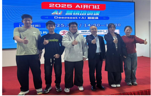 2025年3月10日,为契合AI时代发展需求,进一步提升学生在数字化营销领域的专业素养。在“思维岛校企工作室”魏志勇经理的组织下,电子商务专业学生参与了一场前瞻性的AI营销培训讲座。培训由祥鹤职业技能培训学校、金鹤川科创公司、德申汇喜悦俱乐部以及拾六传媒联合承办,集结了数位AI营销领域的资深专家,旨在全方位解构AI营销的底层逻辑,帮助同学深度掌握其核心知识与应用技巧。