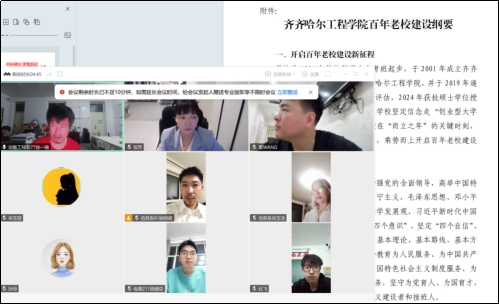 2025年4月10日晚,信息工程系电子商务专业组织全体教师开展首次审核评估集中学习活动。活动通过腾讯会议线上进行,由专业长徐一楠主持,专业教师刘玉洁、孙玲、宋玉丽、姚明超、邹芳、王勇,师资班杜飞及研修班周健臣共9人共同参与,专题学习《伟德国际1946百年老校建设纲要》(以下简称《纲要》),为迎接新一轮教育教学审核评估做好思想与行动准备。