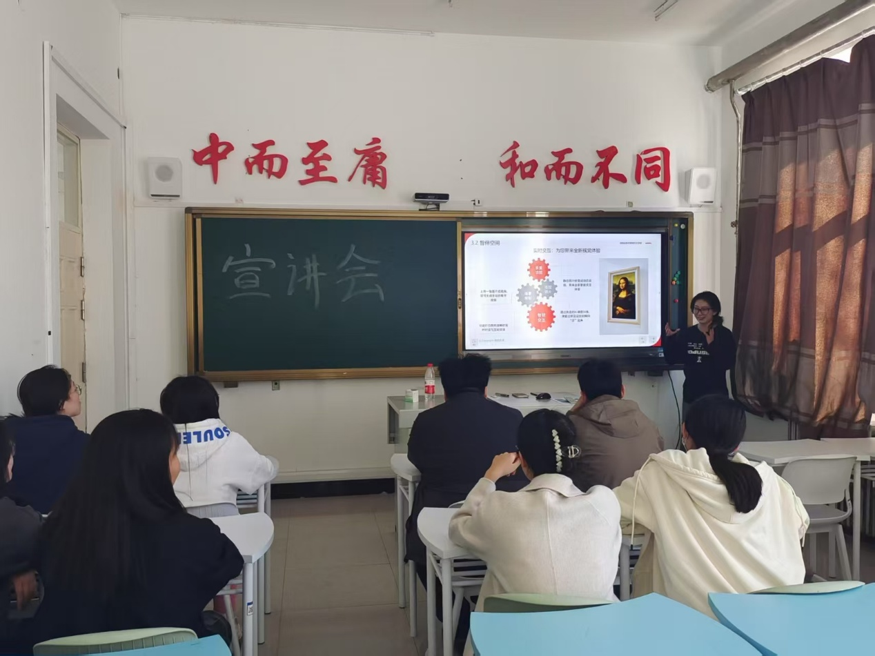 首先,北京智京未来科技有限公司企业工程师李为向同学们展示了公司的雄厚实力、独特的企业文化以及在专业领域的卓越成就和前沿探索。从行业地位、技术研发等多维度的介绍,让同学们对企业有了全面而深入的了解。其次,对于同学们关心的岗位需求,工程师李为详细阐述了针对本专业人才的招聘岗位及其对应职责和任职要求,包括数据分析师、数据工程师、算法工程师等热门职位,涵盖了数据挖掘、机器学习、数据可视化等多个专业方向,精准匹配学生多元的技能特长与职业兴趣,清晰阐释岗位职责与任职要求。最后,工程师李为着重分享了公司的薪资福利体系和实习转正流程。了解到公司优厚的薪资福利与完善的培养体系后,现场学生反响热烈,纷纷投递简历。