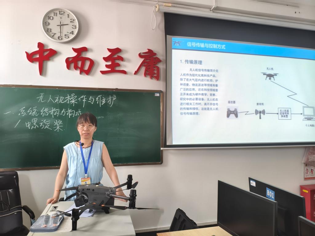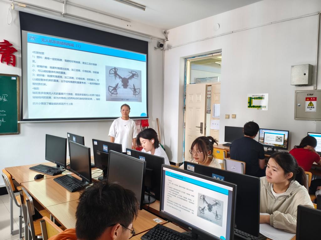 首堂课围绕《无人机系统概论》展开,关娜以产业发展趋势为切入点,详解无人机分类、系统组成及农业、物流等应用案例,同步解读适航标准与安全规范。赵芳则结合飞行物理学原理,通过空气动力学模型剖析飞行控制逻辑,并介绍后续将开展的“操作与飞行训练”“故障诊断与维护”等实践课程规划。