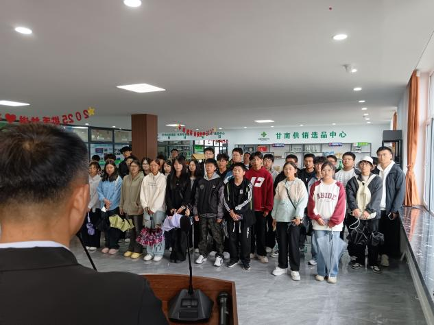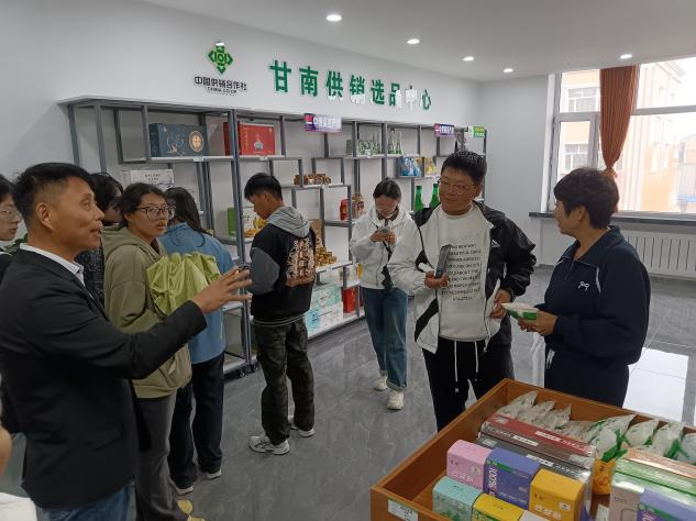 甘南供销选品中心作为县域电商供应链的核心平台,承担农产品品牌运营、渠道整合及物流优化等职能。活动期间,徐一楠老师指导学生系统参观选品区、直播运营中心及仓储物流基地。企业负责人详细介绍了农产品标准化选品流程、电商渠道分销策略及直播带货运营模式,帮助学生直观理解县域电商“从田间到市场”的全链条运作机制。