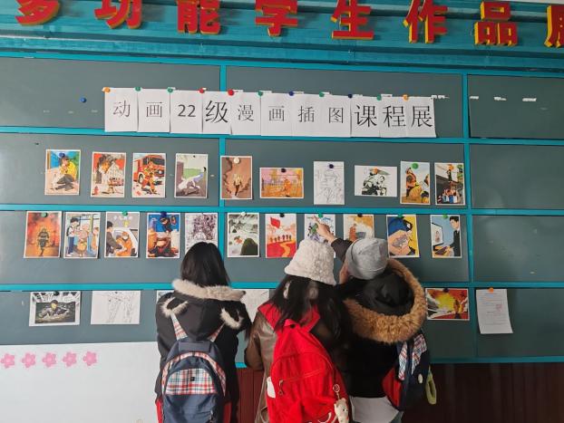 12月5日上午,动画22级在一号教学区多功能展示区举办了漫画插图课程展活动,由齐媛园老师主持,动画221班共34人参加。