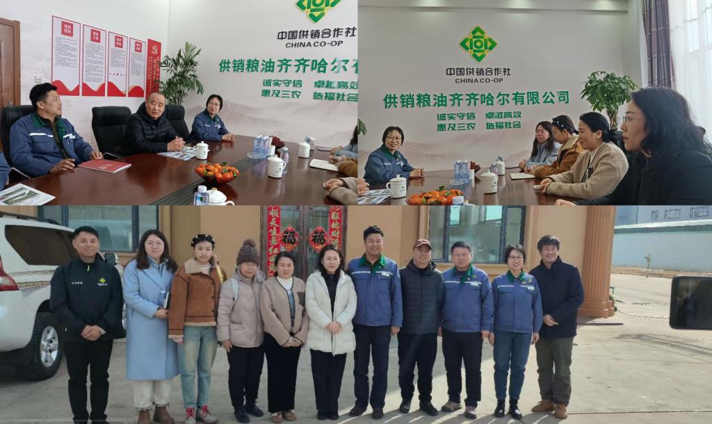 在供销粮油齐齐哈尔有限公司,企业总经理范小刚、人事科长周幸热情接待了考察组一行。座谈会上,范小刚详细介绍了企业发展历程、主营业务及人才需求情况,该公司作为中国供销集团旗下央企,专注于粮食及农副产品收购、仓储、运输等业务,目前急需电子商务、计算机相关专业人才,尤其对农业经营管理、农业追溯等领域的专业能力高度关注。郝丽娜院长介绍了学校的办学特色、专业设置及毕业生培养情况,双方就校企合作、实习就业、人才培养等方面达成共识,明确了合作意向,合作协议已进入企业审批流程,企业表示将积极通过招聘、实习等形式支持地方高校人才培养,主动承担社会责任。