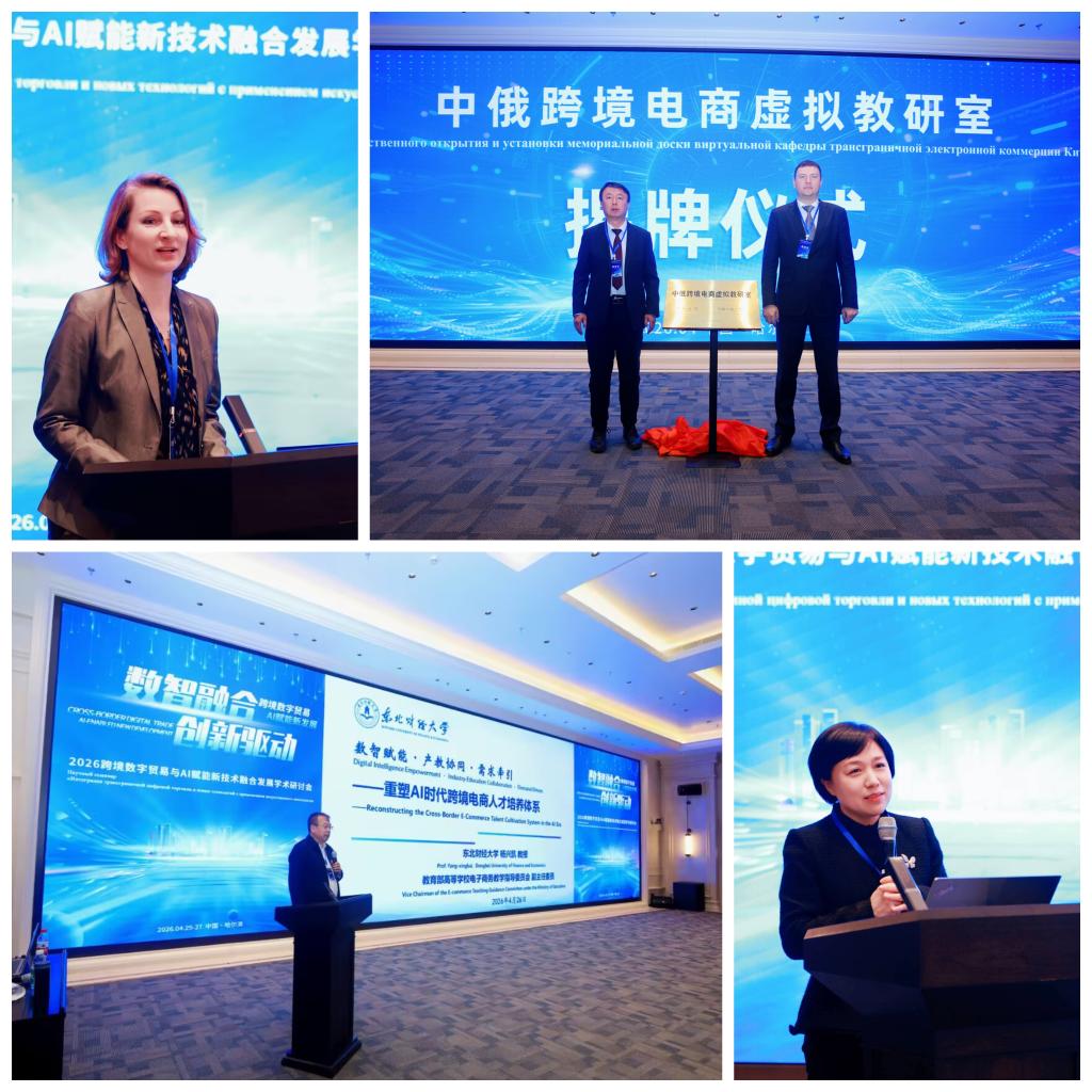 大会聚焦跨境数字贸易发展、AI赋能商贸新技术融合、对俄跨境经贸合作、跨境电商专业教学改革、数字化创新人才培养等核心议题,通过多场主旨报告、专家讲座、学术研讨,全面解读国家及教育部关于跨境电商、对俄贸易的宏观政策与未来发展趋势。与会中俄专家共同分享跨境电商专业规划、课程体系构建、产教融合育人、国际化人才培养、实训基地建设等先进办学经验,内容前沿详实,兼具理论高度与实践指导意义。