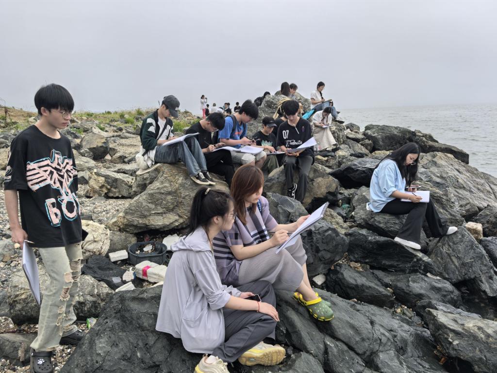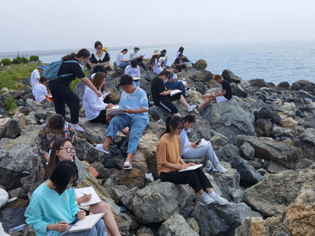 此外,四位教师还带领同学们在基地周边进行速写,任杰、杜启珩两位老师在绘画方面进行指导,用画笔描绘海边的风景。姜岩、佟鑫两位专业长则在周末,对同学们一周的表现进行小结,希望大家在注意安全的同时也要遵守纪律、认真完成相应作业。