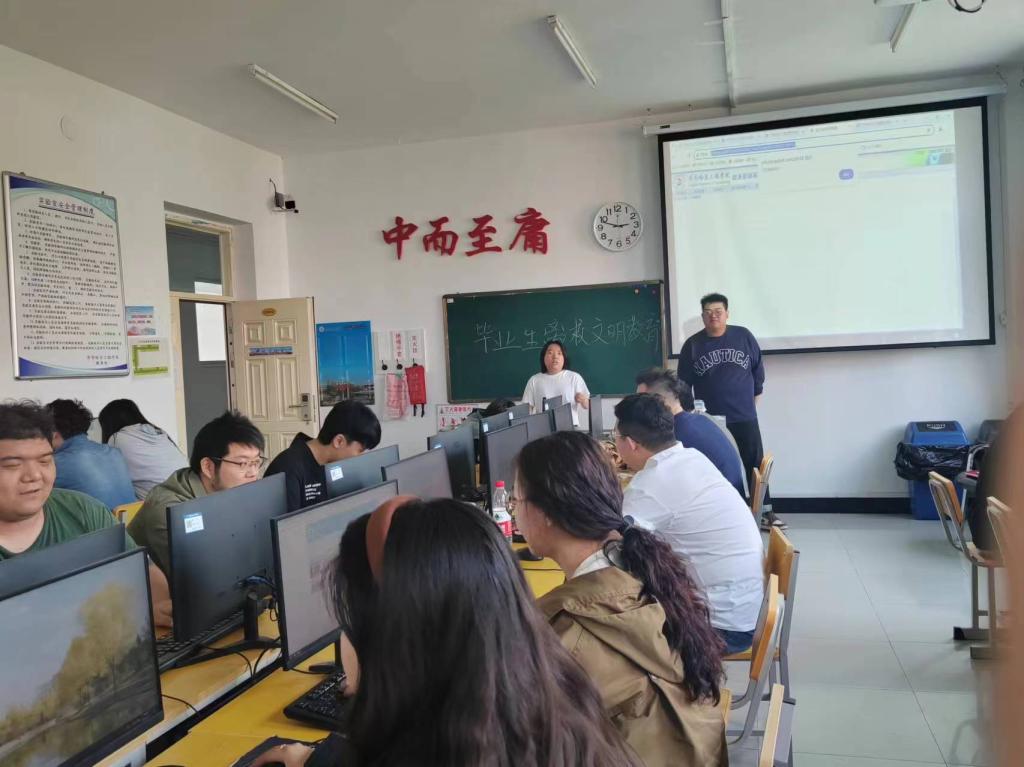 5月27日在教室3308,视觉专升本221班由导员刘阳老师带领全班同学开展毕业生文明离校班会。在班会中强调说明毕业生离校之前收拾好寝室卫生,交齐毕业生所需材料。