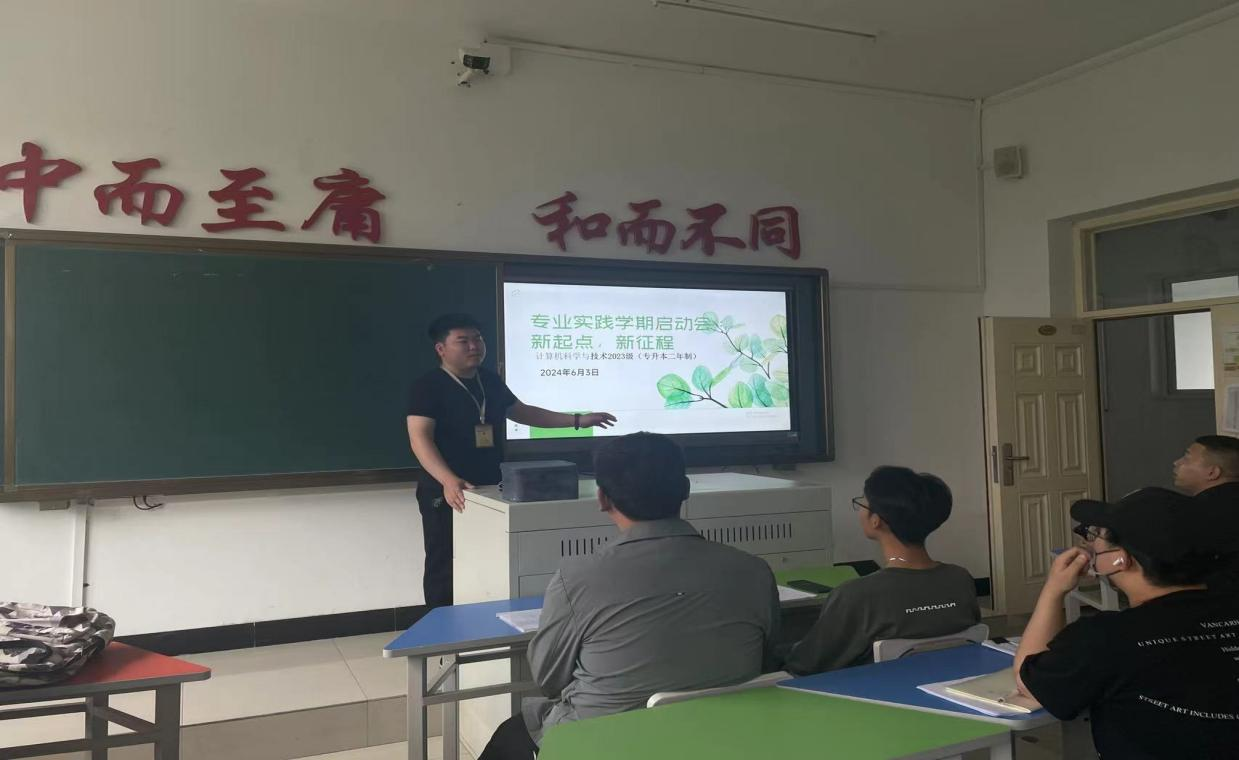 2024年6月3日下午,阳光明媚,23级计算机科学与技术专升本专业的同学们齐聚在1#1405教室,共同迎来了以“新起点,新征程”为主题的专业实践启动会。本次会议由教师沙梦涛主持,吸引了83名同学的热情参与。