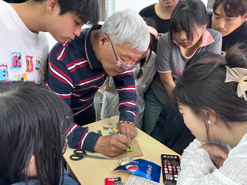 除此之外,朱老师还与同学们进行了互动交流。他耐心解答了学生们在创作过程中遇到的问题和困惑,并分享了自己多年的创作经验和心得。这种面对面的交流方式让学生们深受启发,也让他们更加坚定了学习和传承非遗文化的决心。