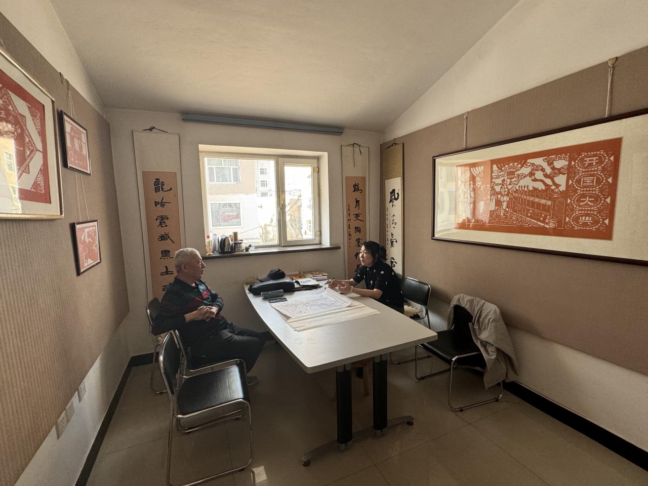 为落实教育部提出的非遗技艺专业建设稳步推进,强化非遗专业建设。4月12日下午,我校视觉传达设计专业长姜岩和专业助理王昀碧,专程拜访了位于黑龙江省非遗项目崔氏剪纸传承人戚玉恒。