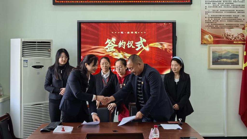 为落实立德树人根本任务,深化“五育”并举教育改革,培养德智体美劳全面发展的社会主义建设者和接班人。4月9日上午,信息工程系计算机科学与技术专业携手双鸭山市心愿达成启智康复中心,在一教学区2404会议室举办共建社会实践基地签约仪式。仪式由信息工程系负责人刘春媛主持,系党总支书记李野、党总支副书记孙晓芳、健康与护理系主任郭玲玲、计算机科学与技术专业负责人韩楠楠、双鸭山市心愿达成启智康复中心院长胡艳丽、教师陈卓参加本次签约仪式。
