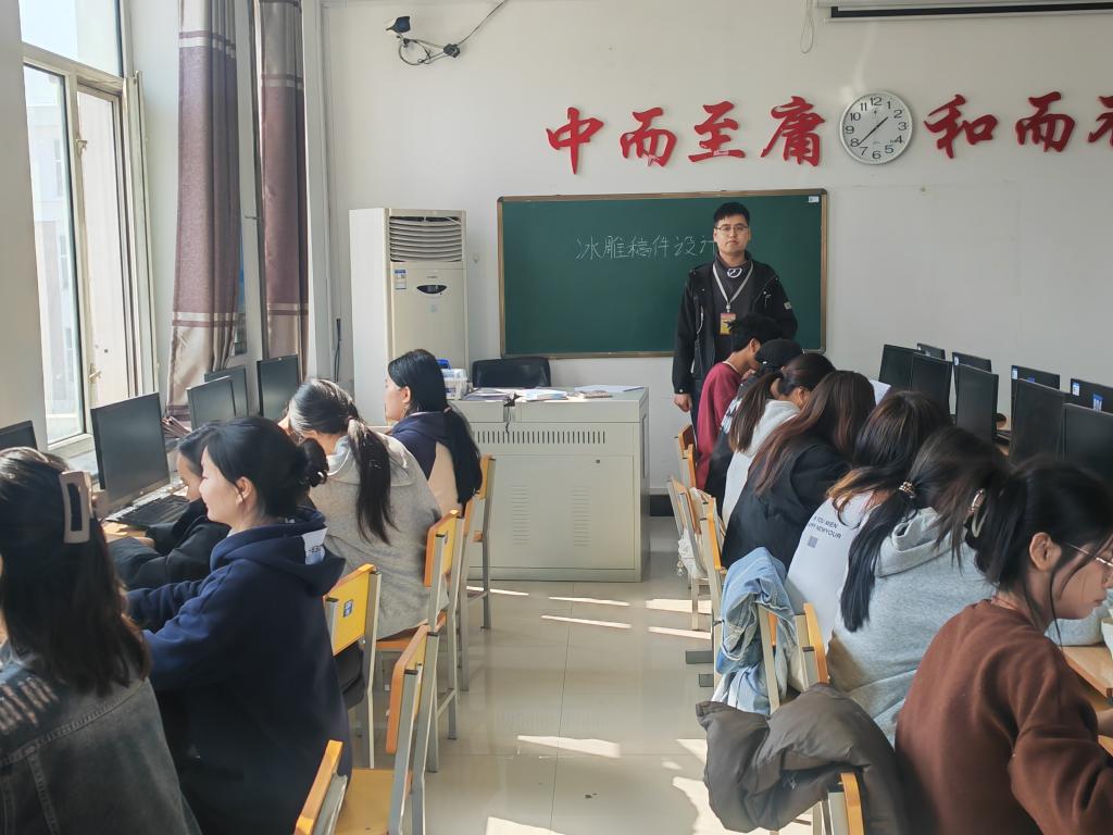 课中,辛明明老师首先带领视觉232班的同学们对冰雕稿重新讲解一番,加深同学们的理解和认识。将初稿优秀作品进行展示并点评,目的让同学们发现自己画面存在的不足并进行改正,完善提高冰雕稿的质量。在老师的讲解下,同学们陆续发现自己画面的问题,并进行改善,辛明明老师在同学们身边时刻关注着,并对有问题的同学进行解答。帮助每一位同学们更好的去完成冰雕稿的设计。同学们在老师的细心教导下,进一步完善初稿,速度快的同学已经完成了最终稿。