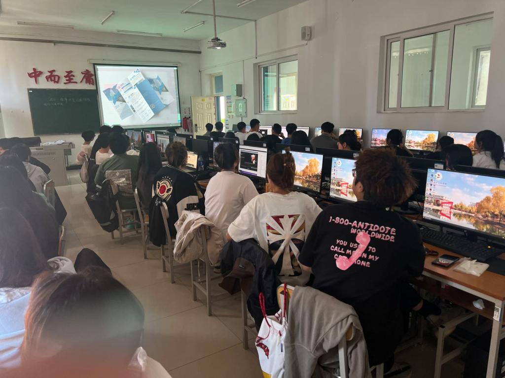 此次课程以学会制作宣传单设计为目的开展。首先,王昀碧老师讲述软件在宣传单设计中有哪些操作重难点。其中,重点为同学们讲解宣传单设计需要构思设计、内容简练并突出重点、宣传单尺度一般是210mm×285mm等多个注意事项。随后,王昀碧老师强调同学们思考和排版样式,好的排版样式可让同学们的设计逻辑清晰,让文章内容更容易被理解,也可以让同学们的设计更加美观。最后,王昀碧老师对同学们的宣传单设计作业进行要求,也对同学们在实操过程中遇到的问题进行讲解和点评。使同学们意识到在设计过程中的不足以及明确宣传单设计的制作方法。