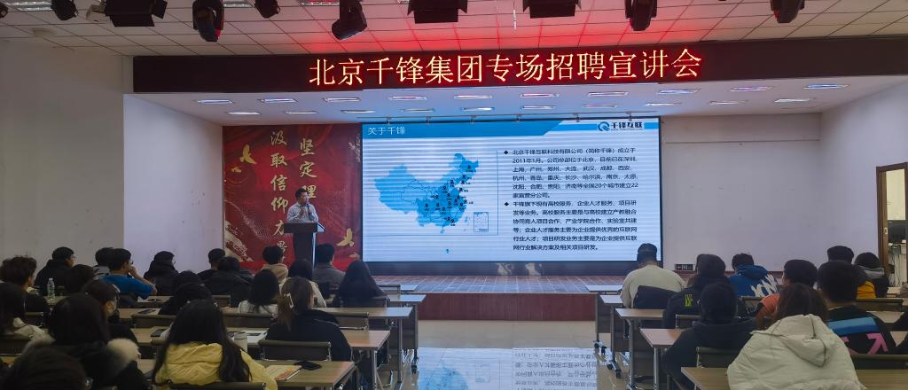 为拓宽学生就业渠道,促进供需匹配,帮助目前尚未就业的毕业生尽快落实就业岗位。12月6日下午,信息工程系在二号教学区2508会议室,特邀北京千锋集团举办两场专场招聘宣讲会,招聘会由系学生工作副主任孙晓芳主持,200余名毕业生参加了此次宣讲会。