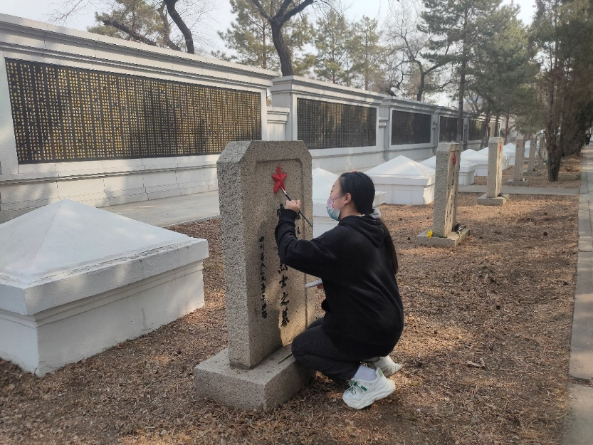 乘车到达西满革命烈士陵园后,动画专业学生先为烈士墓碑拭去灰尘,并对刻字及雕刻描黑上色。随后,全体同学们在纪念碑下集合,团总支书记刘阳致哀悼词,全体鞠躬默哀,在庄严雄伟的纪念碑下,表达深深哀思,并为烈士纪念碑敬献花篮。团总支书记刘阳讲到,悼念革命先烈,是每一个有志爱国青年应尽的责任和义务,是国家和学校对思政教学的落实。仪式结束后,在烈士陵园纪念馆讲解员的带领下,同学们进行了参观学习,进一步了解了革命历史。