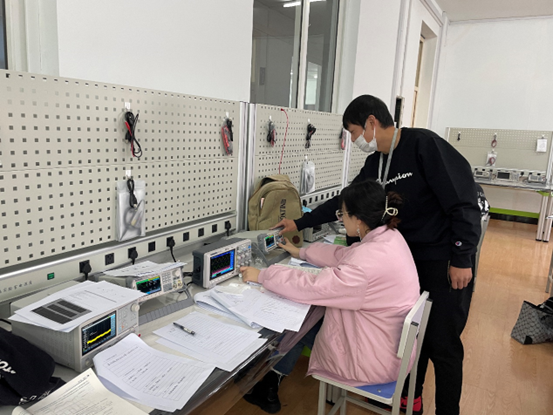 此次项目在专业的自动控制课程基础上开展,同学们在自动控制课程的实验中只是用计算机及相关软件进行信号的仿真实验,而在开放实验中,则用到了实体设备,为专业课进行了补充。本次实验项目是练习示波器和信号发生器的使用方法。李阁老师为同学们介绍了实验仪器的基本操作步骤和注意事项,每个小组在组长的带领下都按部就班的开始连接仪器、调试信号频率并观察结果。小组的每名成员轮流进行操作,确保组员都参与、都会做。由于操作经验有限,实验中出现了信号产生失败、噪音过多等情况,李阁老师针对这些情况进行了指导,同学们在实验中也学到了很多更为实际的技能,动手能力得到了提升。