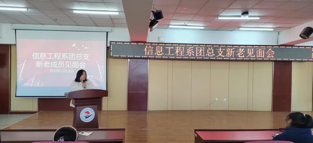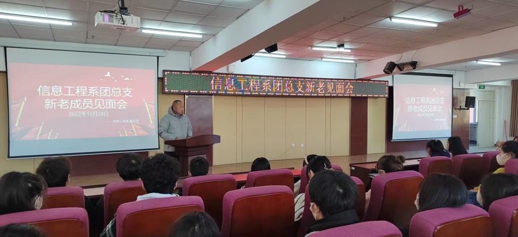 10月28日上午,信息工程系团总支于图书馆501报告厅开展“信息工程系团总支新老成员见面会”。此次会议由信息工程系团总支副书记姚鹏龙主持,信息工程系学生工作处副主任孙晓芳、团总支书记刘阳、各部部长及21级、22级团干部共122人参加。