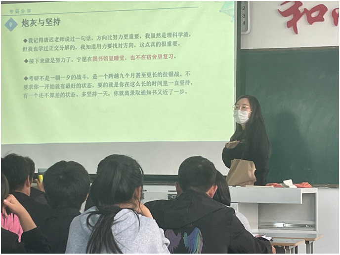 通过此次讲座,同学对未来考研形式和备考工作有了更深的认识和了解,同时激发了同学们的学习热情,大家也着手规划大学学习生活,制定学习目标,为做好职业选择奠定基础。