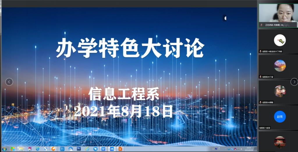 2021年8月18日上午10时30分,信息工程系组织系全体教工通过腾讯会议平台召开办学特色大讨论启动会,会议由系负责人刘春媛主持。