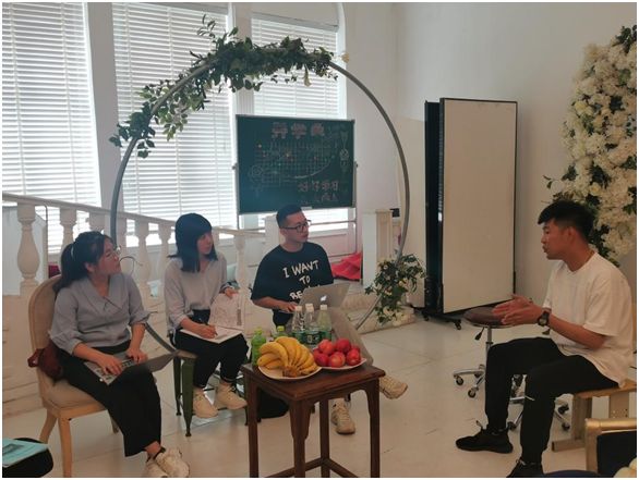 郭老师一行人来到摄影基地后首先在工作人员指引下进行参观,了解学生的工作环境。之后与在基地的8名同学进行访谈,主要向同学们了解实习期间工作人员对实习生的态度如何,工作的上下班时间、交通工具,是否有校内校外指导教师进行指导,实习内容与专业是否相关,实习成绩如何考核,毕业之后是否想从事与专业相关的工作等生活方面与专业方面的问题,学生们针对老师提出的问题逐一进行回答。最后调研组老师对实习基地的校外指导教师蒋老师进行访谈,蒋老师为该基地的摄影师同时也是学生们实习期的校外指导教师。他首先对我校的实习生给予听指挥肯吃苦的评价,对我校的实习生表示满意,他表示在工作中实习生们从不迟到也对工作无怨言,非常谦虚的学习,基地的所有工作人员对这些学生都很喜欢,但也提出了些建议认为学生们沟通能力较弱,个别同学不敢说,不善于表达,反思较少,一其原因方面是由于学生都初次步入岗位缺少工作经验,另一方面在于学生自身性格使然。他建议学校可以在以后的教学中多注意学生沟通能力的培养,蒋老师十分中肯的对学生给予评价和指导及反馈建议。通过本次调研团对学生与校外老师的交流再次使专业深刻了解到了学生们的想法及企业的建议。