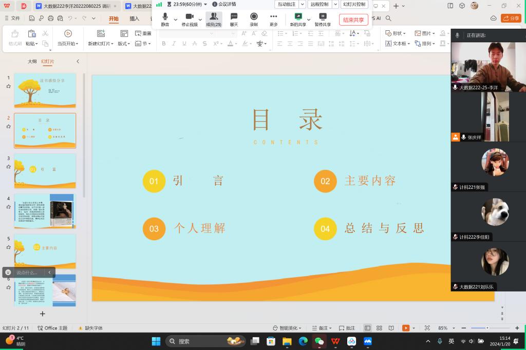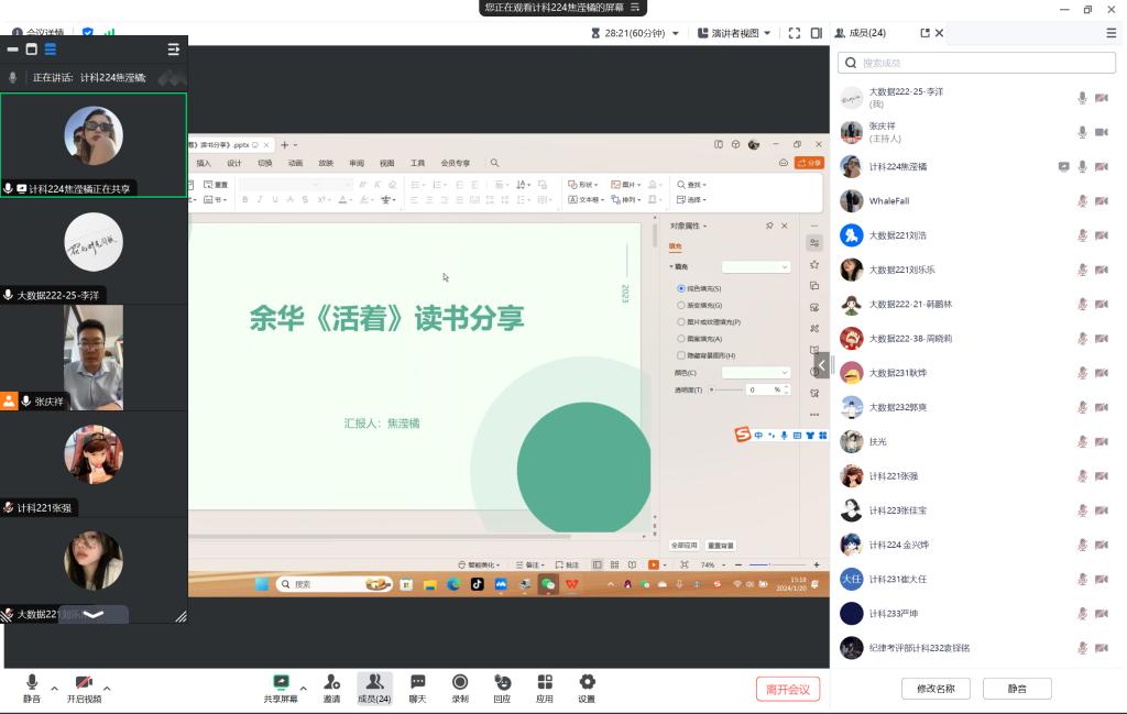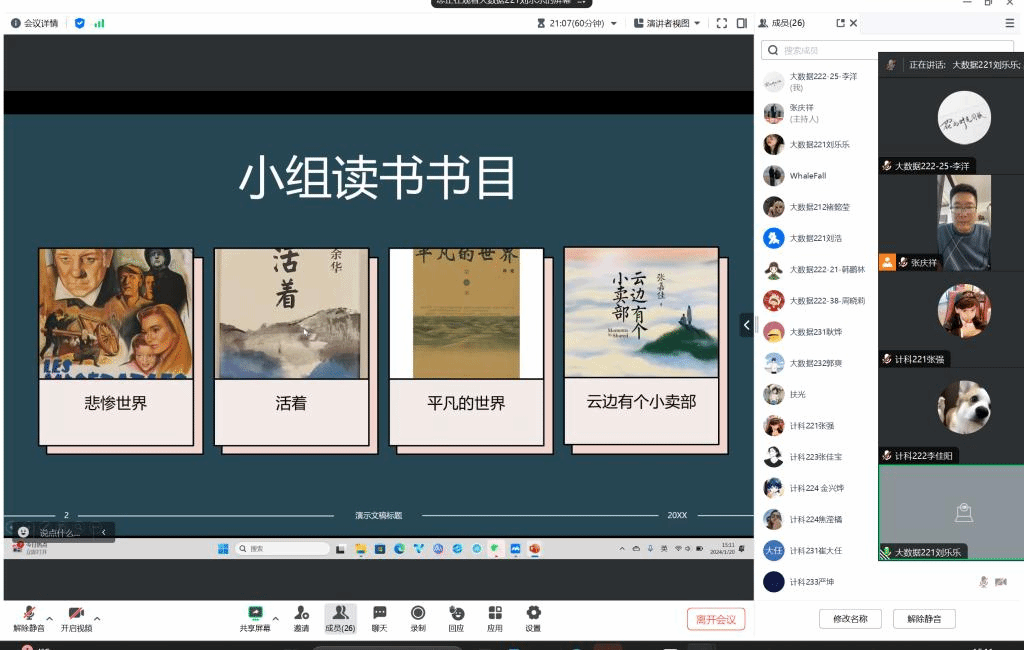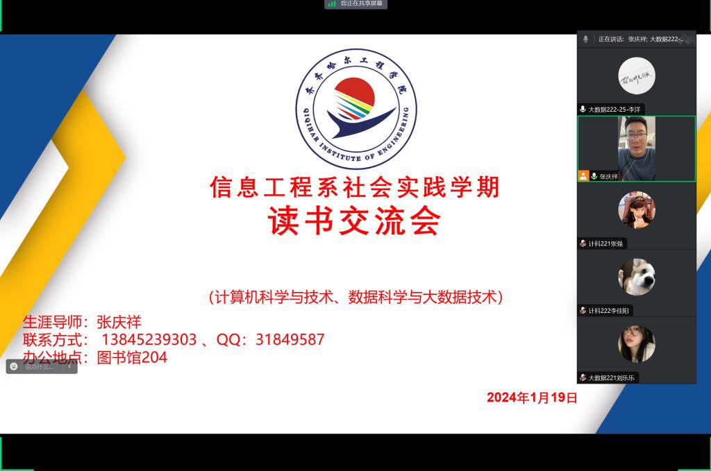 1月20日下午,信息工程系生涯导师张庆祥通过腾讯会议召开第四学期读书交流会并对第二周活动情况进行总结。