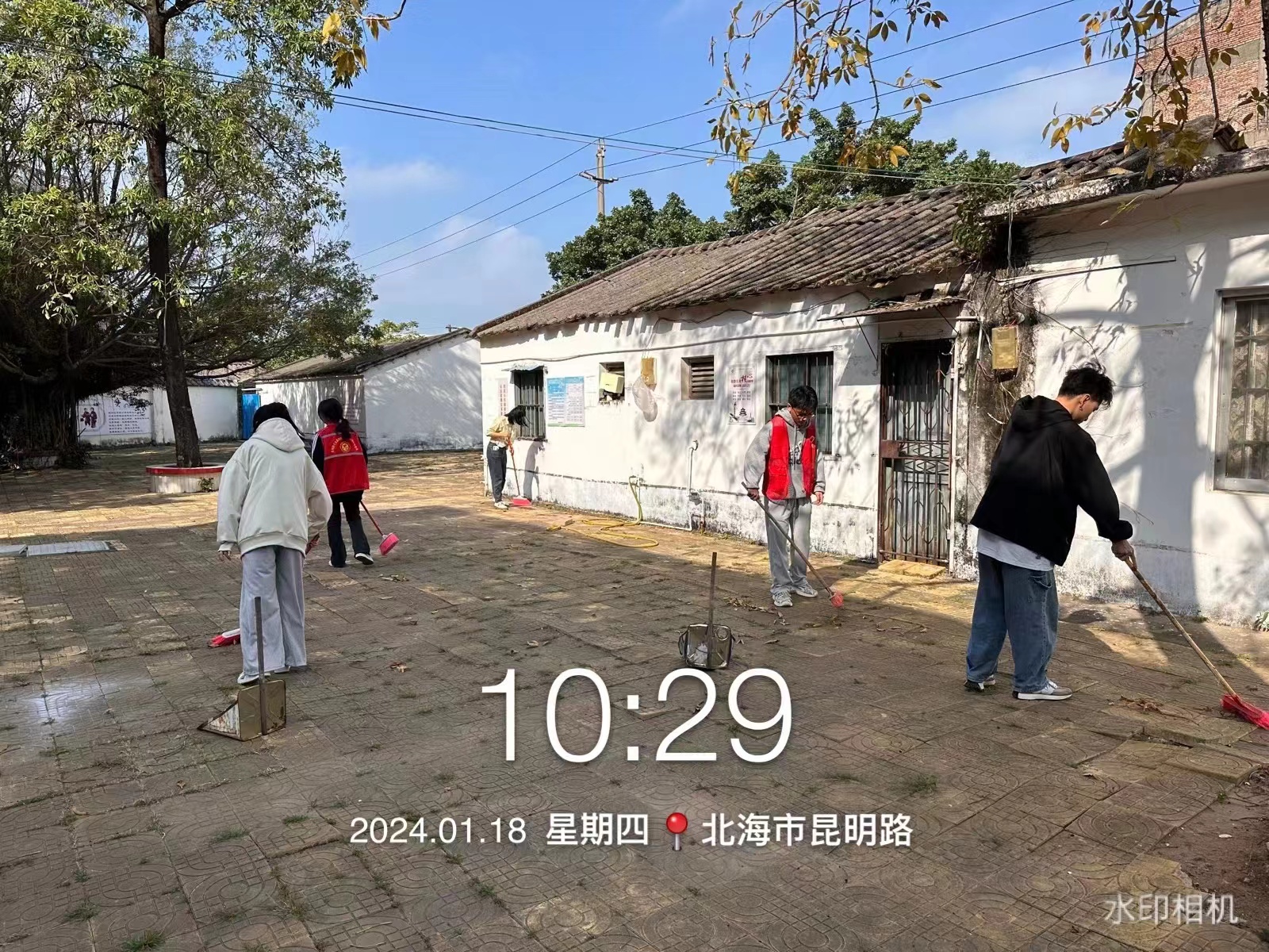 1月18日上午,视觉232班的小组成员张涵涵、陈金凤、李春燕在广西北海市昆明路社区参加了社区服务活动。服务内容的内容是社区清扫。